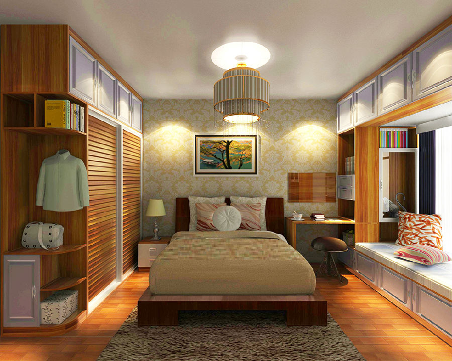 時(shí)尚洋氣的榻榻米造型,多個(gè)收納空格,不僅在功能上實(shí)現(xiàn)了一房多用,還擴(kuò)大了整體的收納空間。暖暖的色感,讓人有一種寧靜感,雖然面積不大,但是一切都井然有序,是小家庭的選擇。