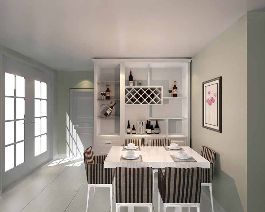 從整體布局來看,雅致白充斥著整個(gè)空間,條紋色布藝搭配,讓整體空間不顯單調(diào),純色的酒架設(shè)計(jì),使整個(gè)空間更加整潔素雅,白色的大面積使用,凸顯空間的一塵不染。