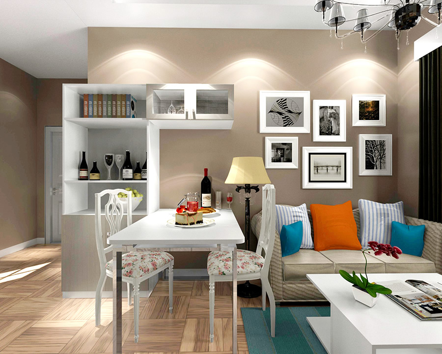 首先映入眼簾的就是背景墻與地板,采用的是原木的色彩,給人一種返璞歸真、回歸生活的質感,設計感十足的吊燈,為整體空間增色不少。