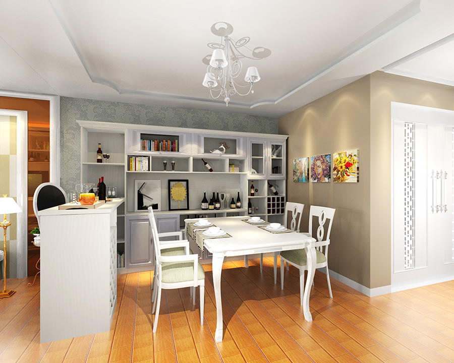 既有法式的浪漫,又有現(xiàn)代的時(shí)尚,餐桌和餐椅均為米白色,其線條也十分流暢自然,在制作工藝上極其考究,在白色吊燈的點(diǎn)綴下更顯典雅風(fēng)范。