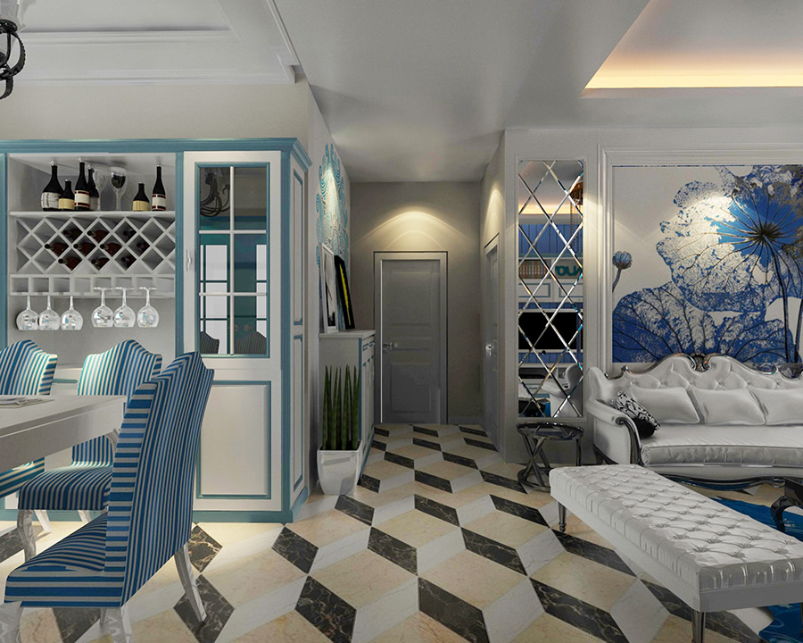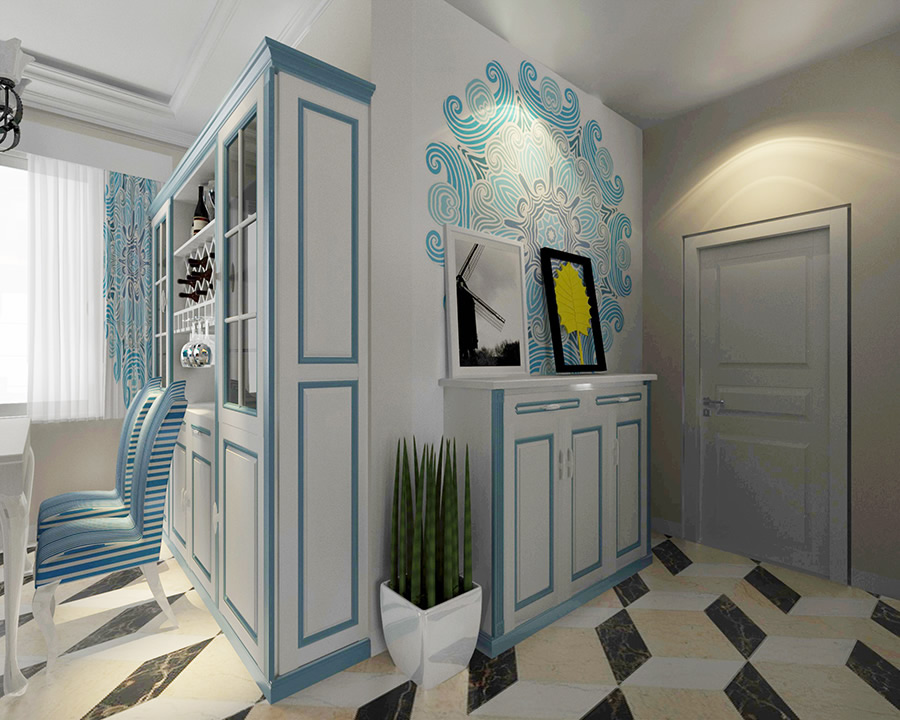 清新靚麗的色彩,讓人眼前一亮,拼接圖形 的大面積使用,讓整體氛圍更加富有神秘感,尤其是背景墻與窗簾布藝的使用,更加的凸顯文藝范,純白色的花瓶中的小花,讓整體視覺(jué)更加的溫馨與舒適。
