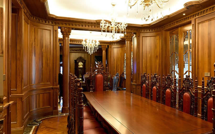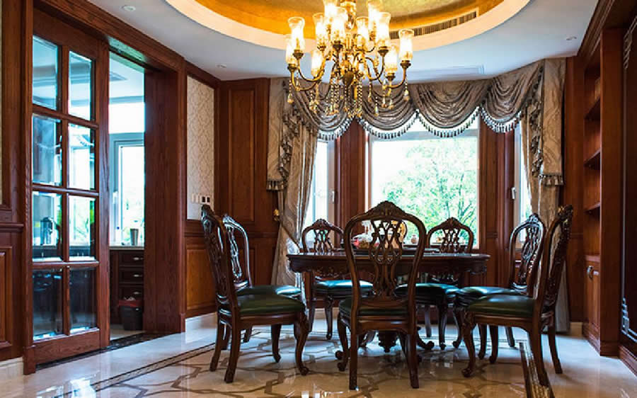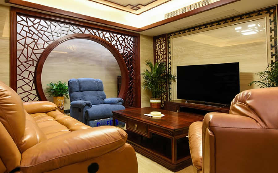 朱紅色整體色系,給人以厚重的質(zhì)感與高雅氣質(zhì),看起來十分婉約與高雅,也讓客廳整體看起來更加具有神秘感,可能這就是復(fù)古風(fēng)的獨(dú)特魅力吧。桌椅與沙發(fā)的配合,質(zhì)感與成熟的切換,切換中有帶并有著自己獨(dú)特的風(fēng)格,朱紅色條的結(jié)合,更加凸顯主人的高雅大氣,讓客廳整體布局看起來更具有品味,燈光下家具陳設(shè)散發(fā)著一種靜謐感。